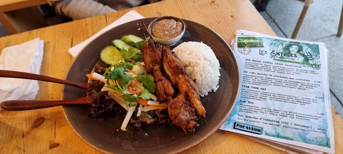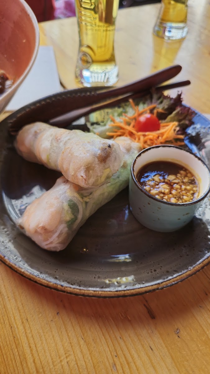 A Hidden Gem at the Rosengarten – Mémoires d’Indochine What a delightful experience! From the moment you step into Mémoires d’Indochine, you’re welcomed by a warm, modern interior filled with charming wooden textures, creative lighting, and little thoughtful details like fresh roses on each table. The ambiance strikes a perfect balance between cozy and elegant – ideal for a relaxed lunch or an atmospheric dinner. Drinks & Vibes: We kicked things off with an ice-cold Beerlao, a refreshing Southeast Asian brew that set the tone for an authentic experience. It’s rare to find this beer in Europe – a real treat! Starters & Main Courses: The deep-fried prawns were perfectly golden and crispy, paired with a tangy sauce and fresh garnish. We then enjoyed a wonderfully fresh vermicelli bowl with herbs, pickled vegetables, peanuts, and grilled meat – light yet full of flavor. The Pad Thai was also a highlight: beautifully balanced, with crunchy vegetables, soft noodles, and just the right hint of spice and lime. Verdict: Mémoires d’Indochine is more than just a meal – it’s a short trip to Vietnam, Laos, and Cambodia, right in the heart of Mannheim. The attention to detail in both food and atmosphere makes this place a must-visit. ⭐⭐⭐⭐⭐